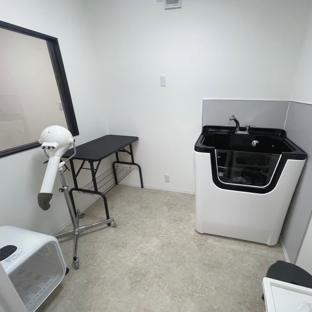 𖤐施術の様子はトリミングルームの小窓から見学できます。